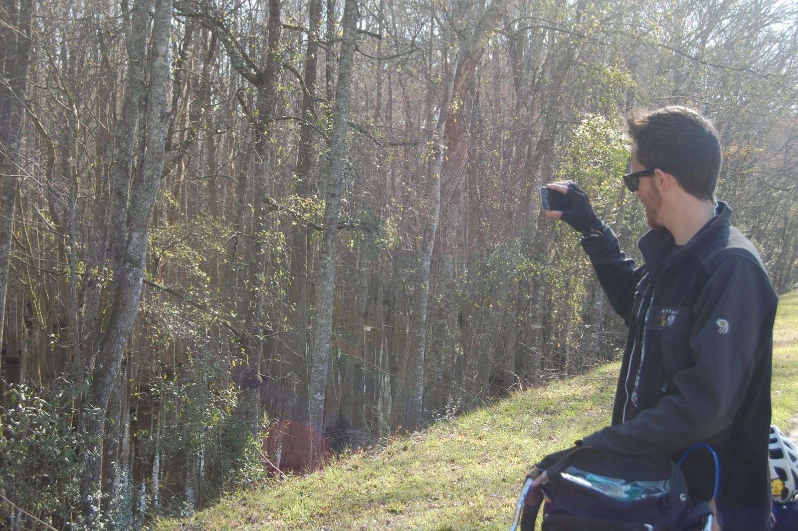 | Important moment in history: It was Sam, not Naomi, who suggested we stop to take a picture of the beautiful swampy forest |